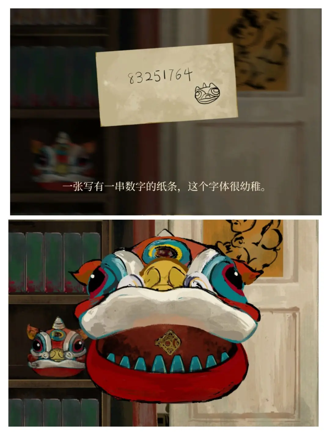 根据这个纸条去按那个年兽头的牙齿,获得另一个钥匙组件。
