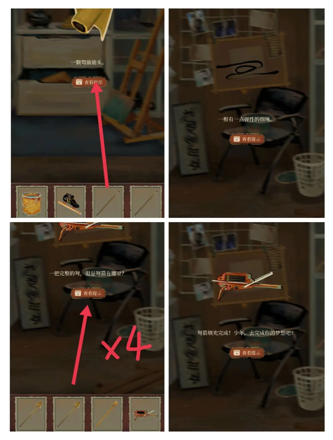 然后用弩箭去完成梦想(划掉)射气球,获得四张描红纸。