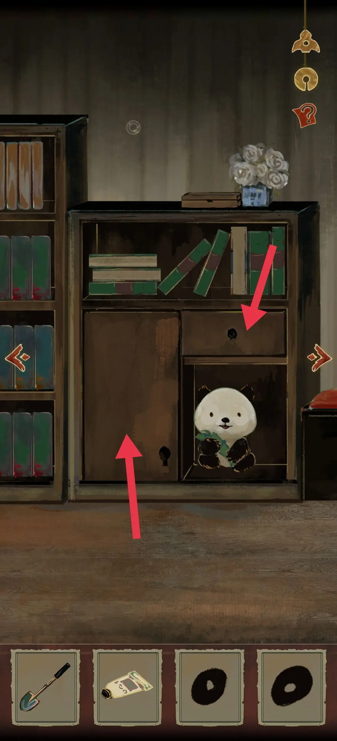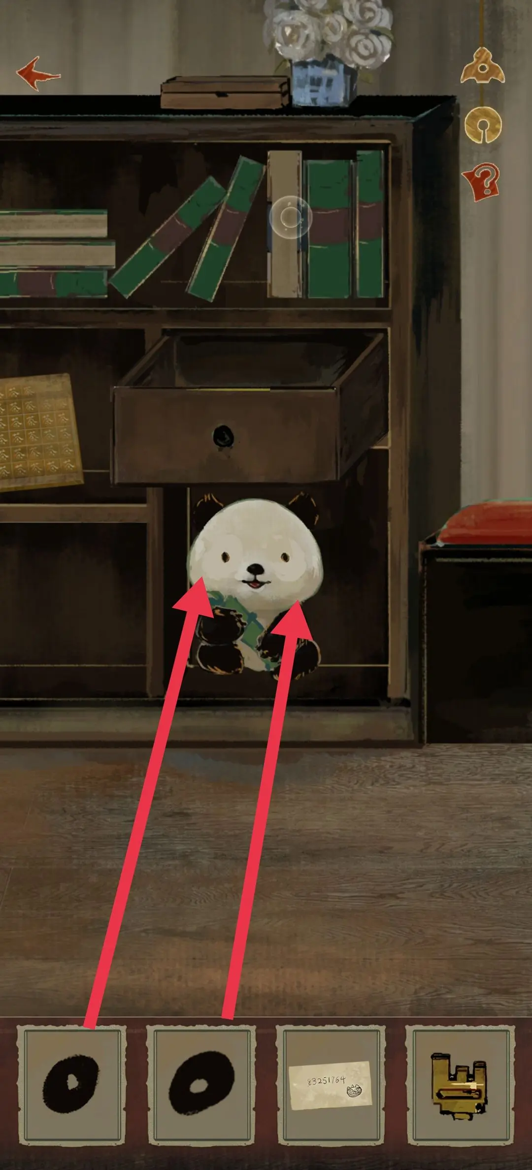 然后把黑眼圈安在小熊猫眼睛上,获得竹子,打开获得另一个钥匙组件。