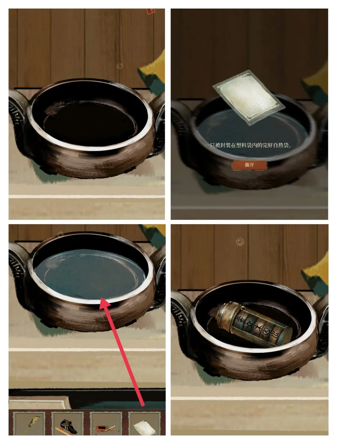将水加入香炉,拆开自热袋放进香炉,可以获得一个密码锁。