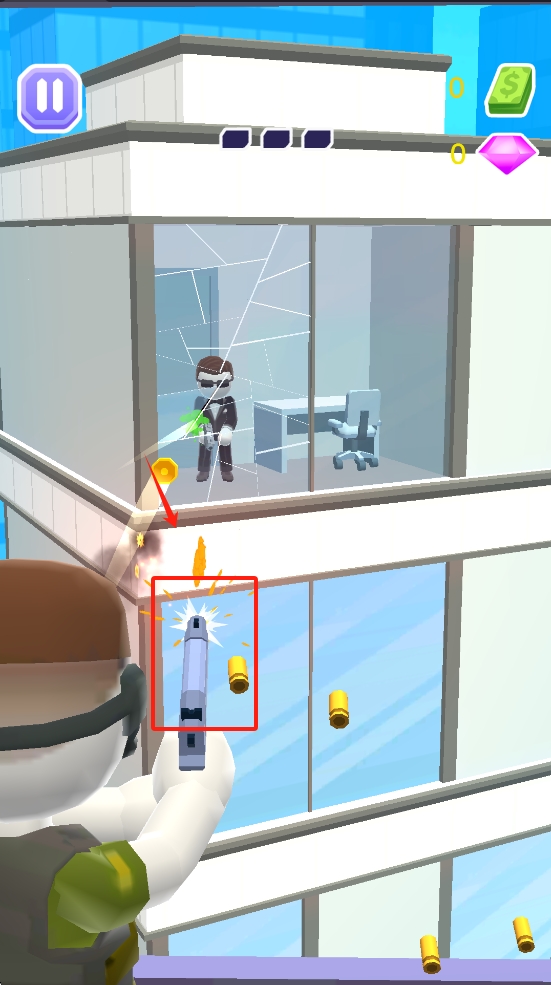 2、使用武器射击目标,击碎玻璃完成任务,获取游戏奖励。
