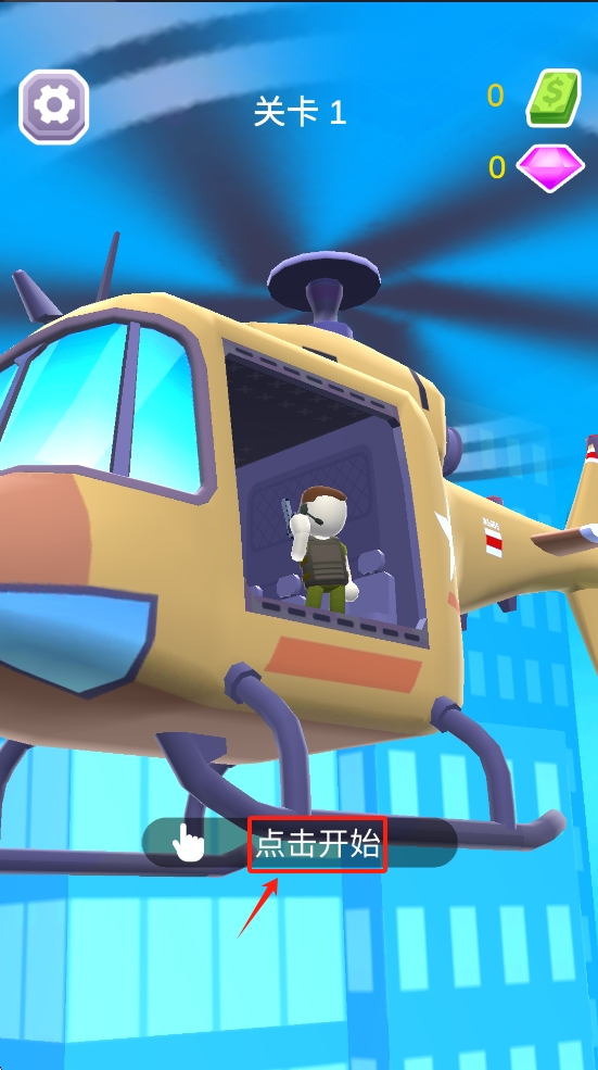 1、点击关卡1界面的“点击开始”按钮,进入游戏准备阶段。