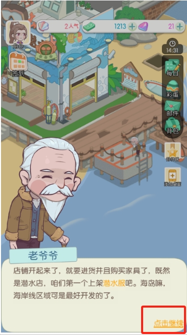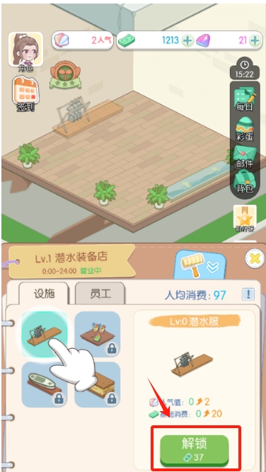 2、点击“解锁”按钮,解锁潜水服,增加店铺商品种类,吸引更多顾客。