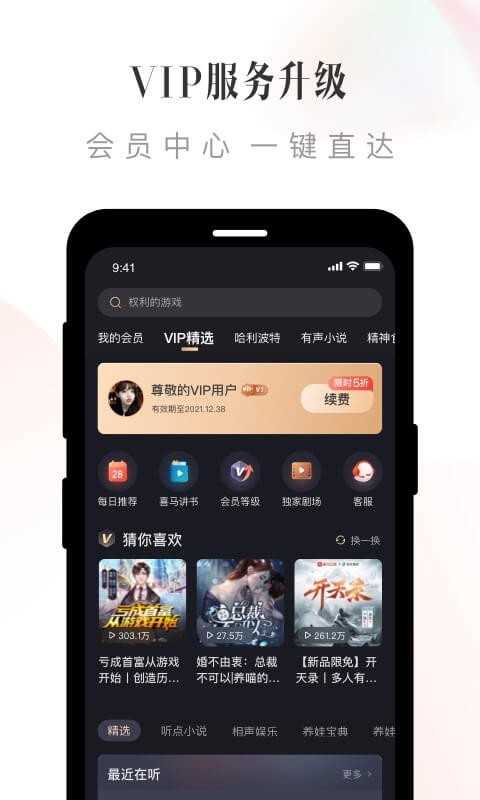 有声小说、相声评书、知识干货、新闻、音乐、脱口秀、段子笑话、英语、儿歌儿童故事,超海量优质音频!