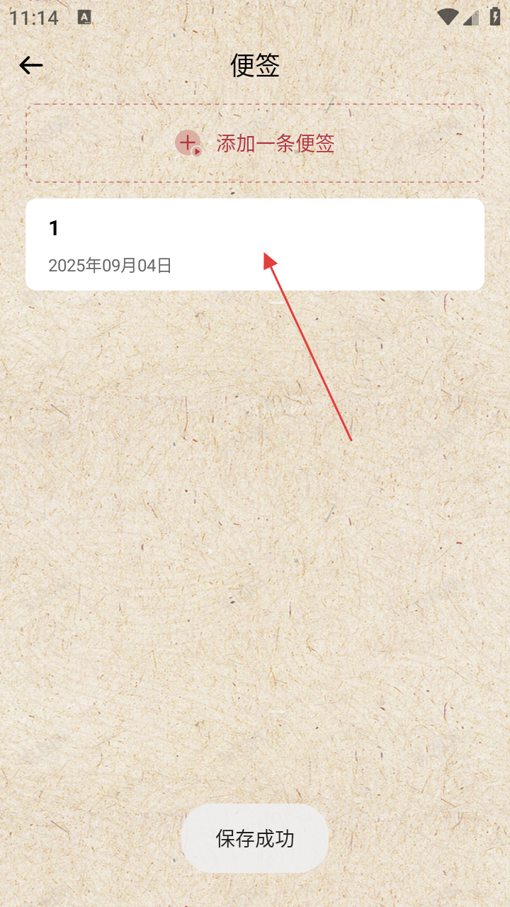 4、保存成功后,会显示“保存成功”,且能在便签页面看到添加的便签记录,如2025年09月04日的便签。