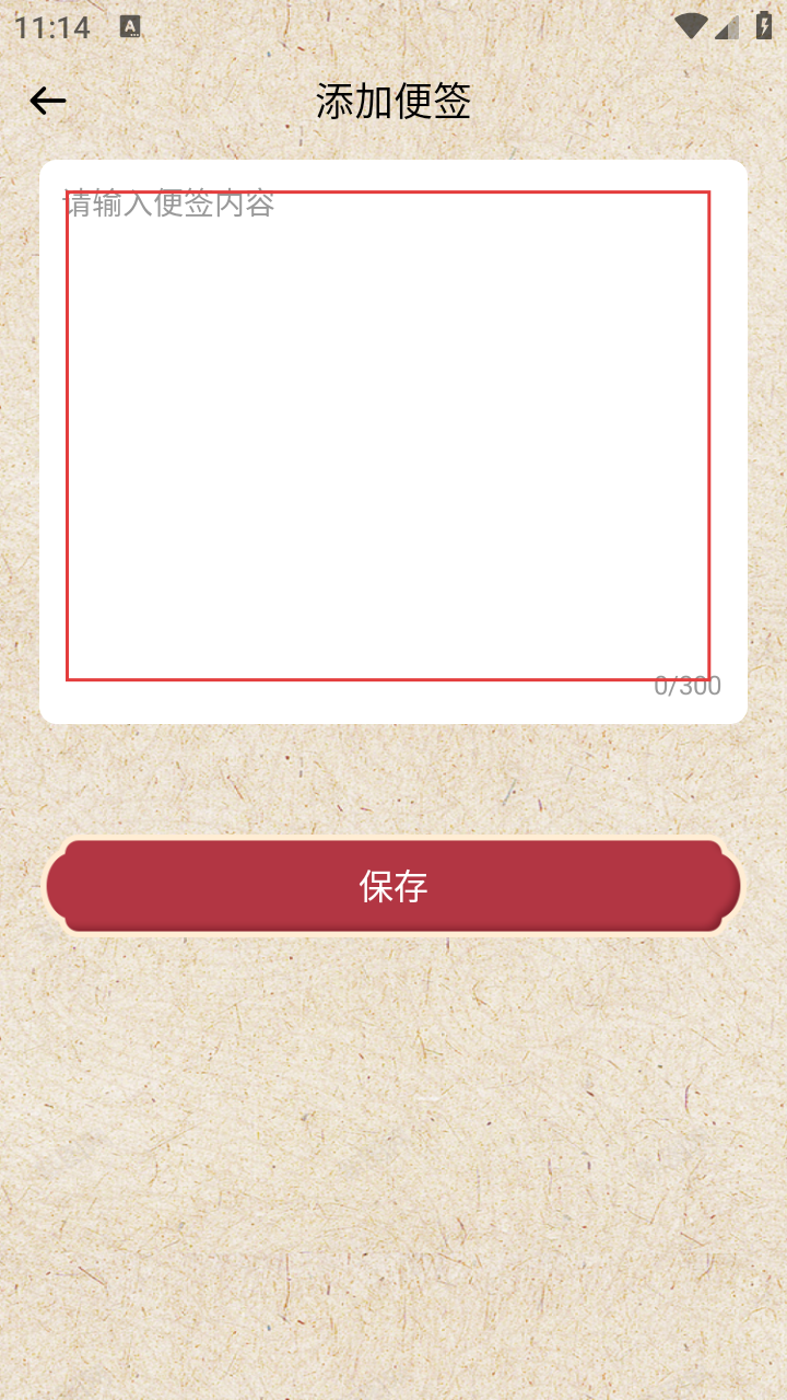 3、在添加便签页面的输入框中输入便签内容,然后点击【保存】。
