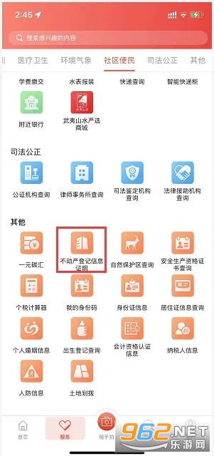 下载、登录“掌上南平APP”,进入“服务”模块,选择“其他”——“不动产登记信息证明”——进入“我的产权”,选择不动产所在的地区,点击“不动产登记信息证明”