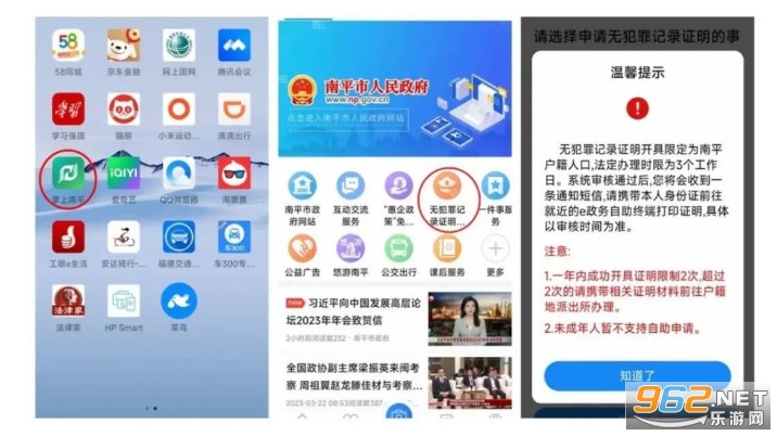 ▼登录“掌上南平”申请办理无犯罪记录证明流程