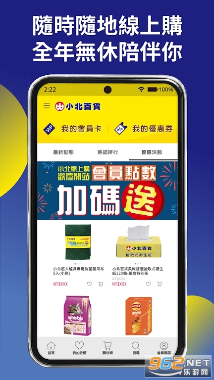 安卓《小北百货商城(小北百貨SHOWBA)》(com.nineyi.shop.s041219)是一个在线购物平台,提供各种商品,包括垃圾袋、湿纸巾、卫生纸、厨房纸巾、清洁用品、日常用品、工具五金、文具等。该商城全年无休,并提供各种优惠活动,如会员点数最高30倍送、单笔消费满额刮好礼送现金、加码抽大奖等。
