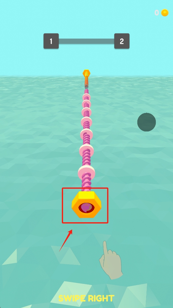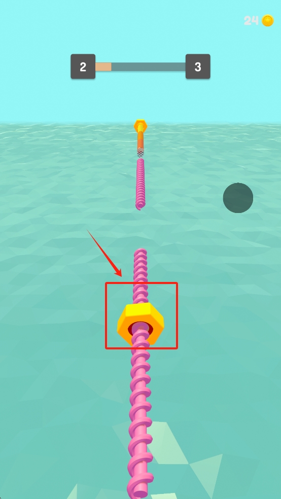 2、向右滑动屏幕以旋转螺丝,通过滑动屏幕,使螺丝顺利通过障碍。