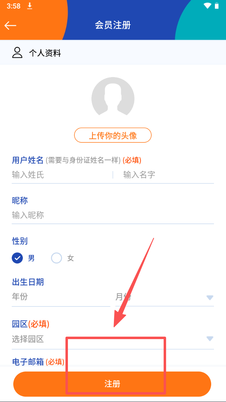 4、在会员注册页面,填好个人资料后点击 “注册” 完成会员注册。