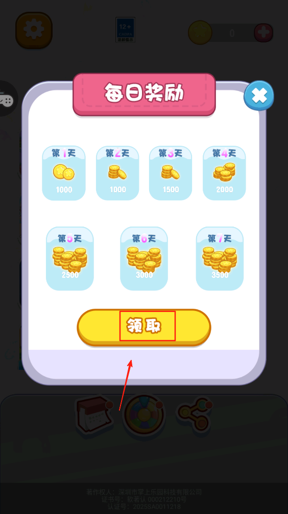 2、点击“每日奖励”窗口,领取金币,连续登录奖励更多。