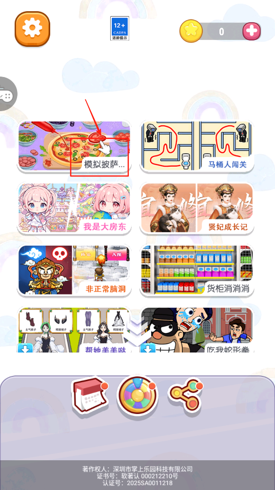 1、在游戏大厅中点击“模拟披萨”图标,进入游戏开始界面。