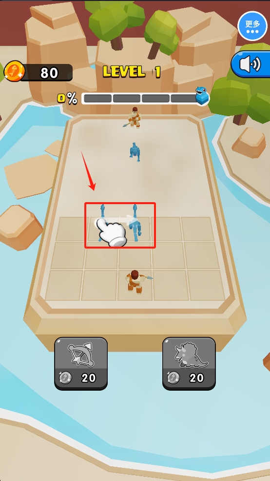 4、在游戏界面中,点击恐龙进行攻击,击败对手,完成关卡目标。