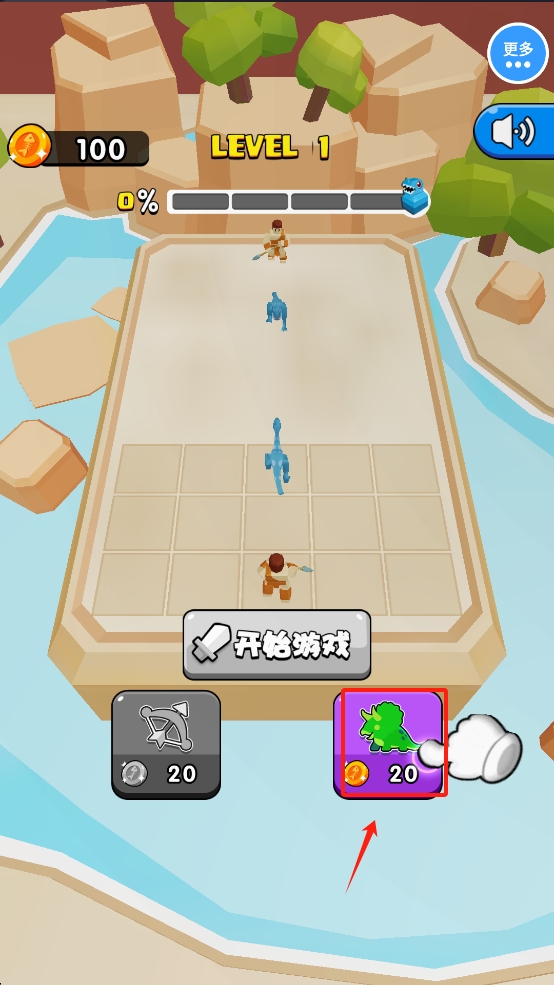 2、点击“开始游戏”按钮,选择并购买新的恐龙,准备进入战斗。