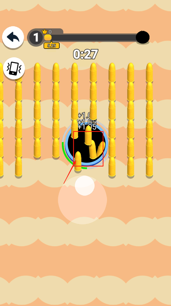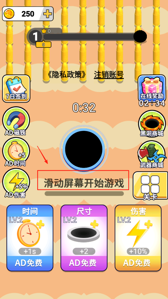 3、 游戏中控制黑洞,移动吞噬场景里的金色子弹。