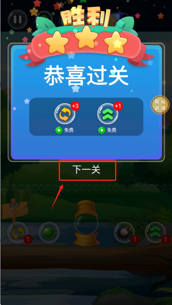 4、完成当前关卡后,点击按钮进入下一关,继续你的游戏旅程。