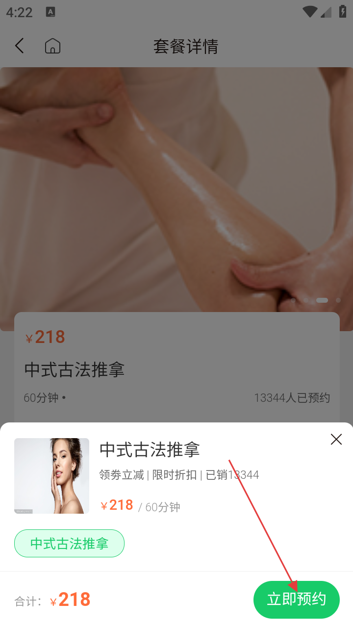 1、进入【元亨到家】平台,找到热门按摩套餐区域,选择【中式古法推拿】等目标套餐。