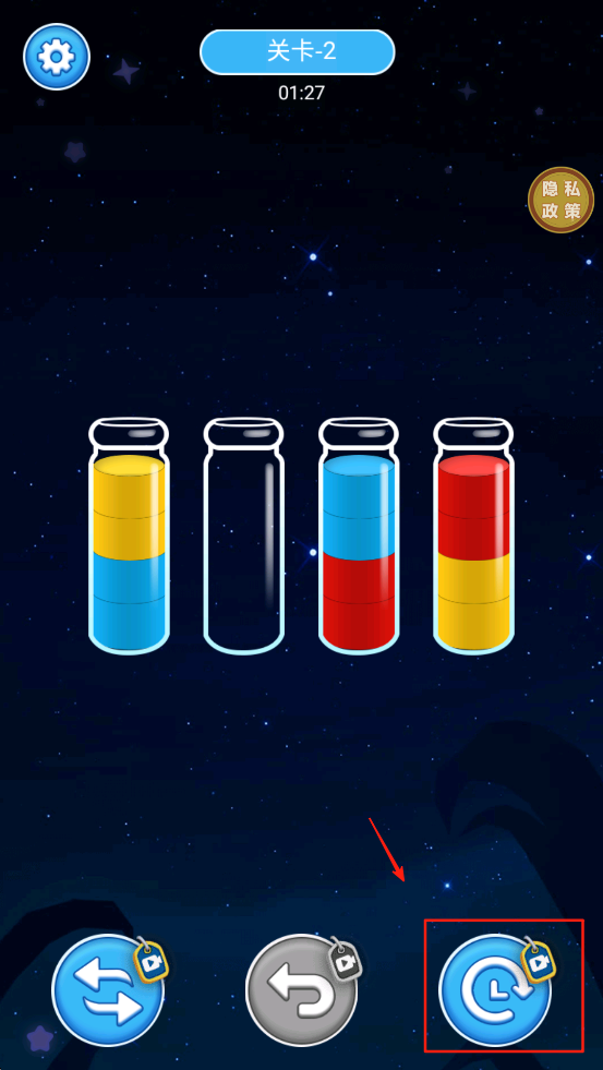 1、观察布局起点:每关开始,仔细审视屏幕上所有试管内不同颜色液体的分布状态,初步规划移动策略。