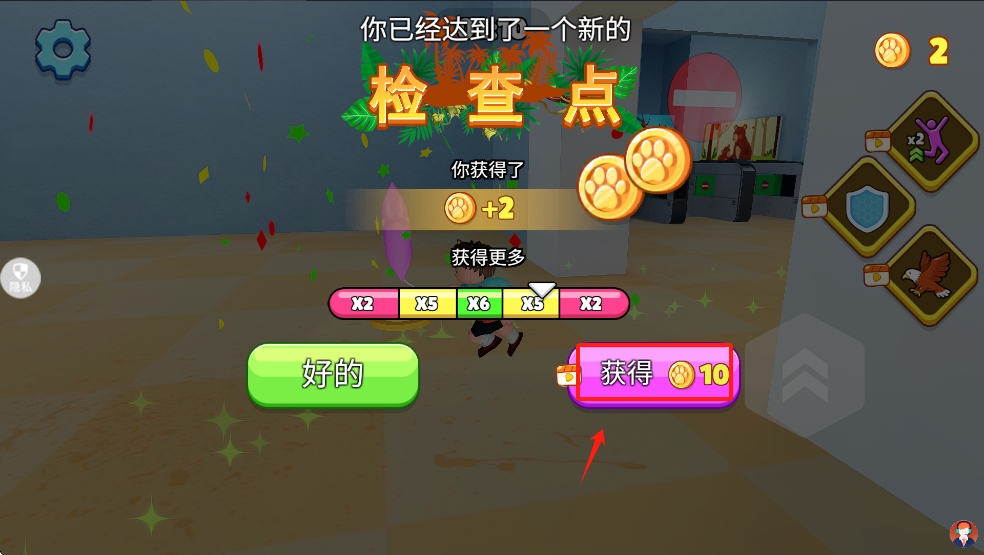 4、点击“好的”按钮确认,继续探索更多区域,获取更多奖励。