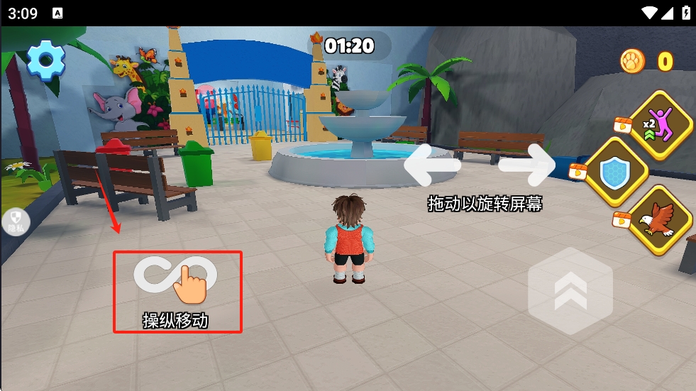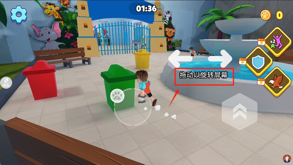 3、在园内找到垃圾箱,点击“操纵移动”按钮,保持动物园的清洁。