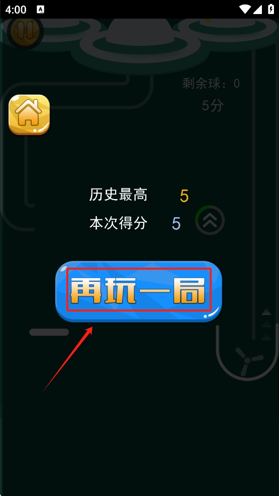 4、游戏结束后点击“再玩一局”按钮重新开始游戏。