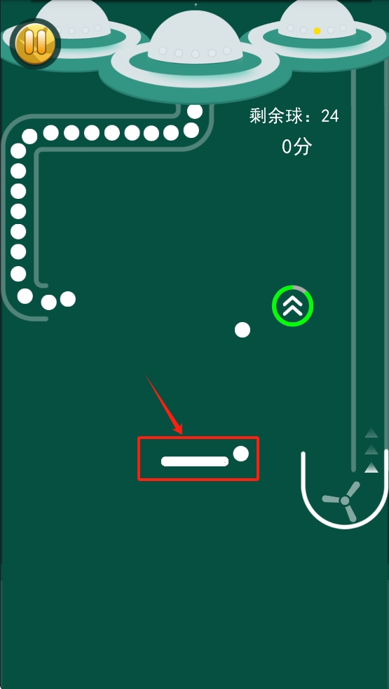 3、手指滑动屏幕底部移动平台,准确接住下落小球。