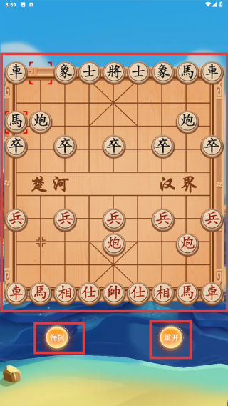 3、点击象棋进行移动,可点击【悔棋】或【重开】。