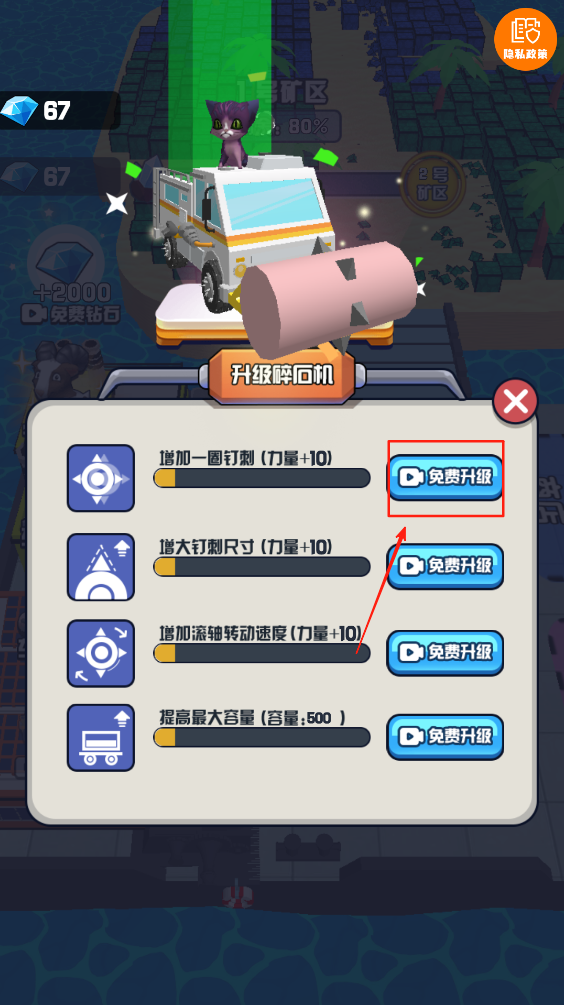4、使用获得的钻石对矿车进行升级,提高矿车的开采能力和效率。