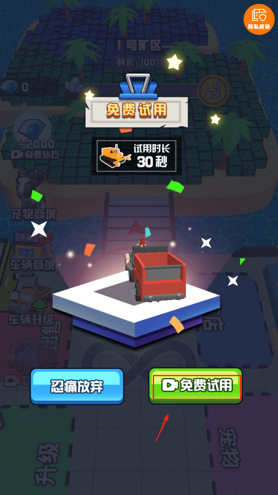 1、点击“免费试用”按钮,体验高级矿车的功能。