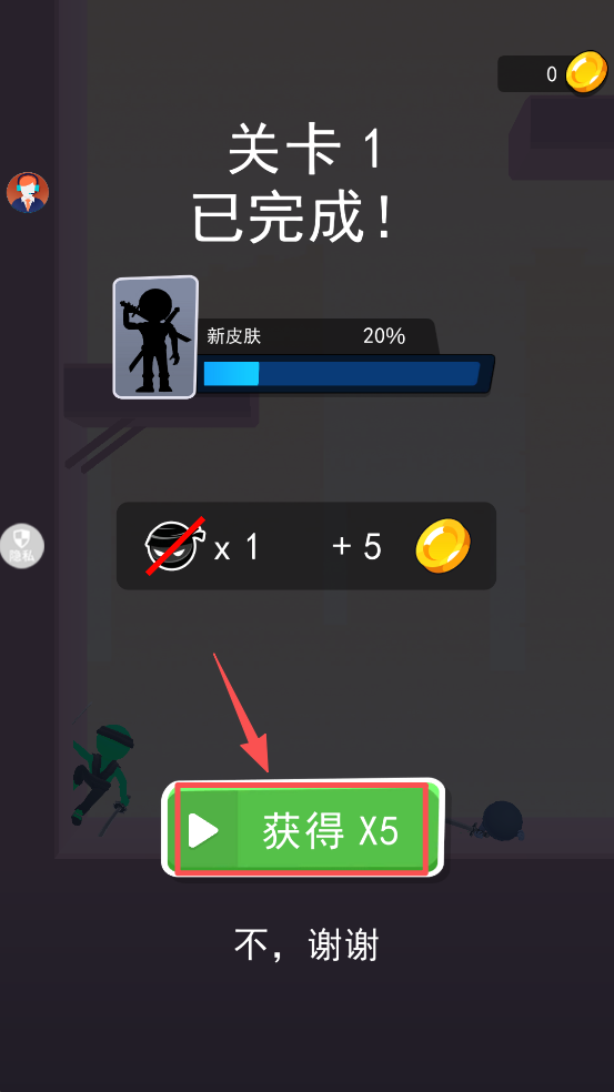 4、在关卡完成后,点击“获得 X5”按钮,领取你的奖励并结束当前关卡。