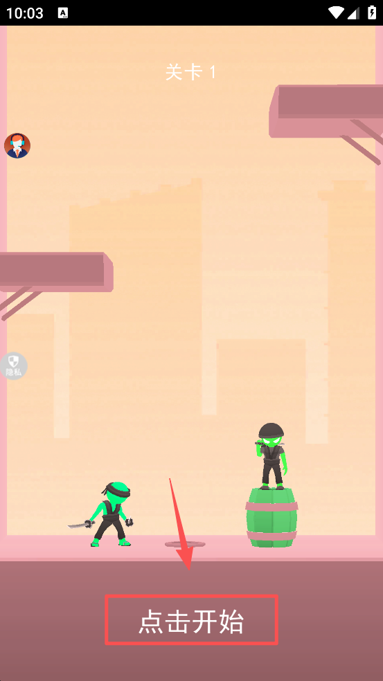 1、点击屏幕上的“点击开始”按钮,进入游戏关卡,准备开始你的冒险。