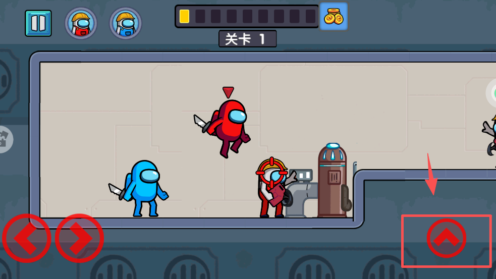 3、然后,点击跳跃按钮让角色跳起,利用高度优势进行攻击或躲避。