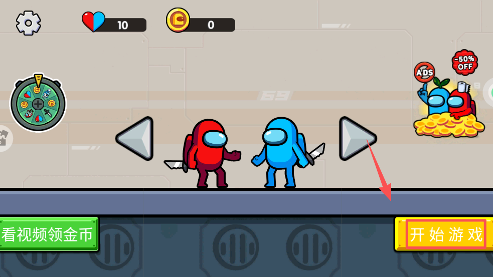 1、首先,点击“开始游戏”按钮进入游戏,准备开始你的战斗挑战。