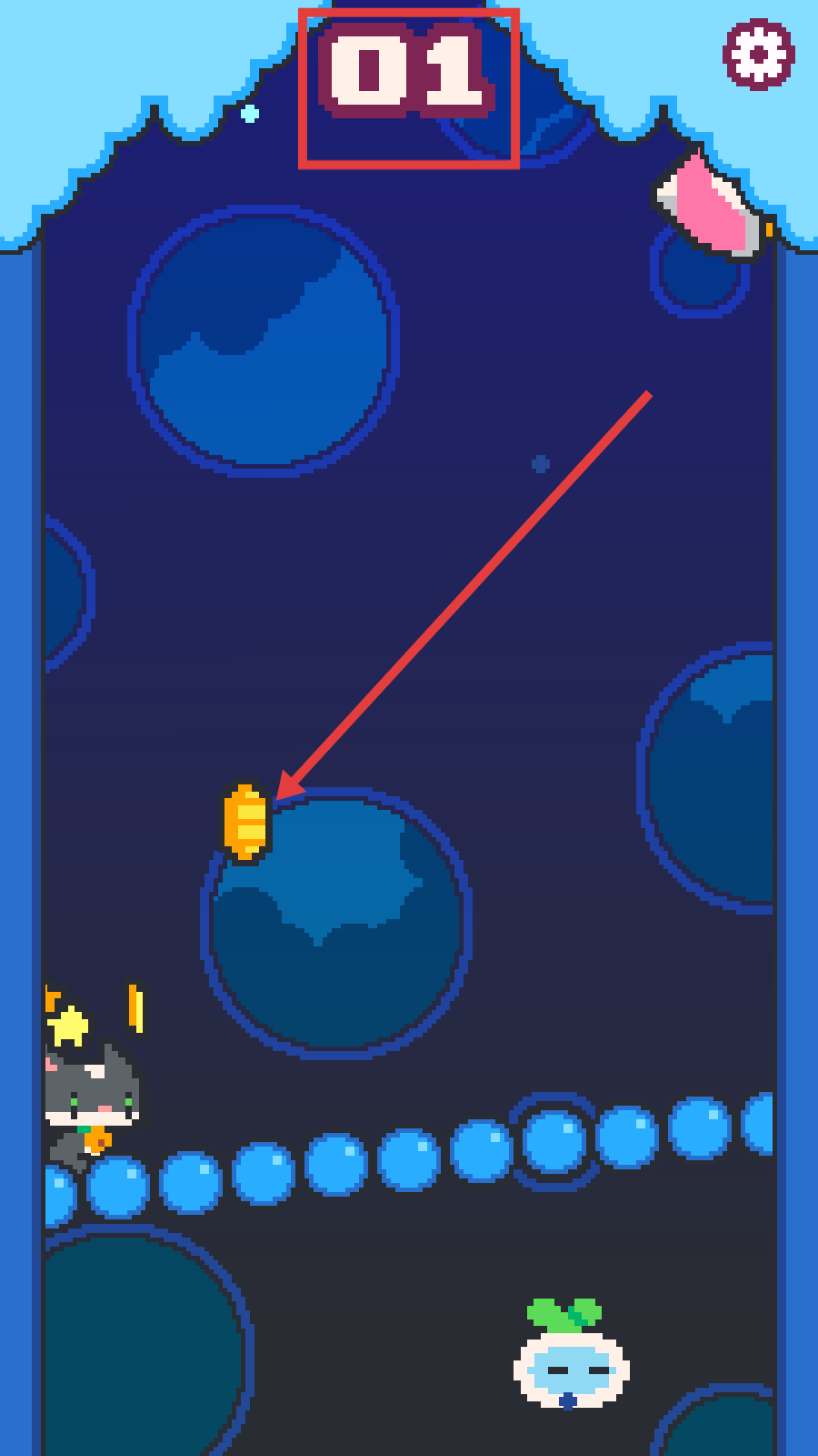 3、收集场景中的【金币】,同时留意上方数字(如【01】),代表关卡进度。