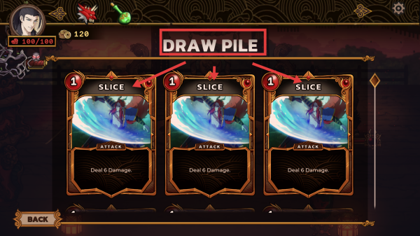 2、留意【“DRAWPILE”】牌堆,其中如【“SLICE”】卡牌可造成6点伤害,合理规划出牌顺序,利用牌堆卡牌打出输出。