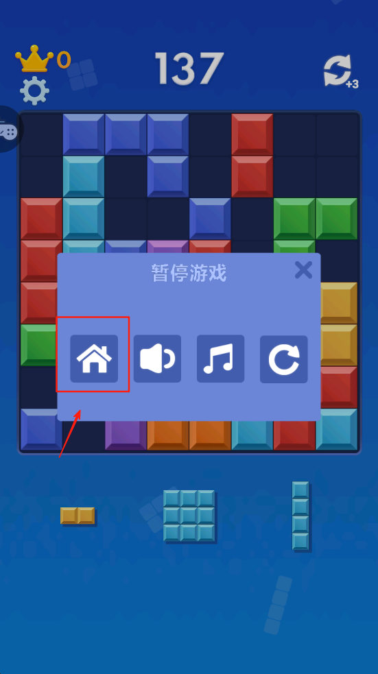4、暂停游戏,点击左上角的房子图标,可以返回主菜单。