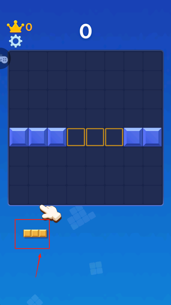 2、放置方块,将方块拖动到合适的位置,填满一行即可消除得分。