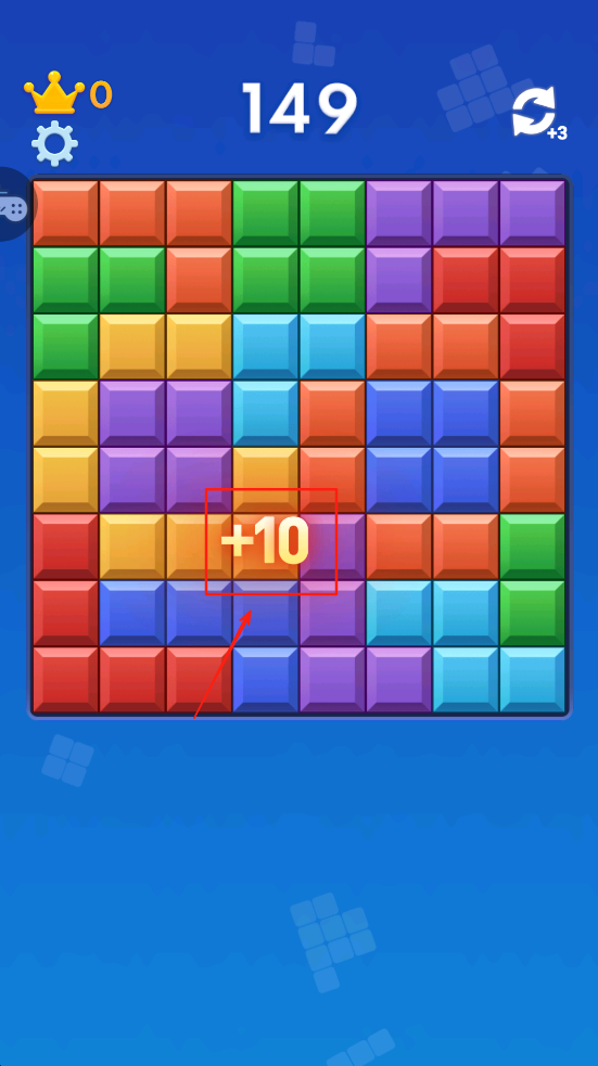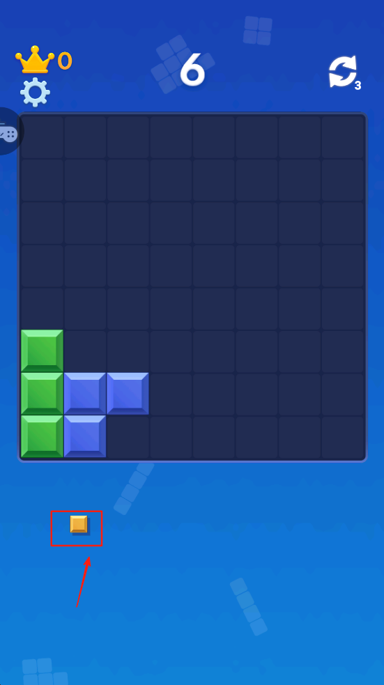 1、开始游戏,点击屏幕下方的方块,选择一个放置到游戏区域中。