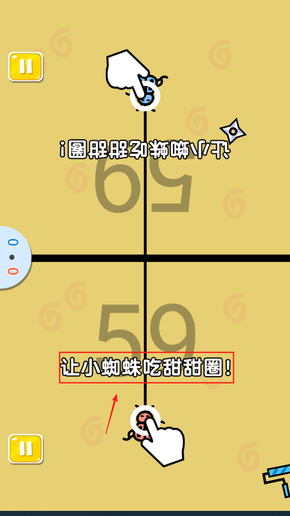 4、进行游戏操作,根据提示让小蜘蛛吃到甜甜圈。