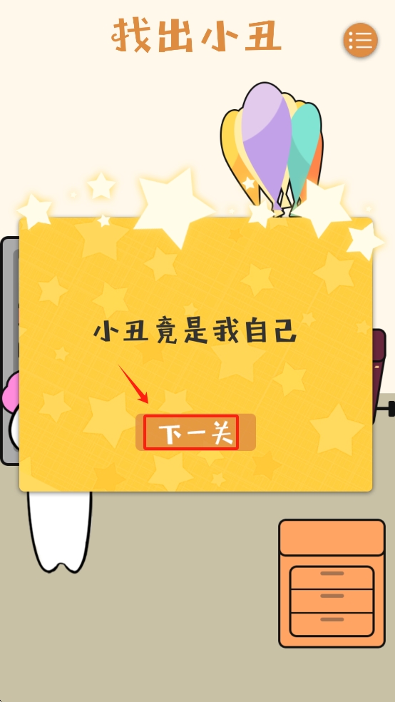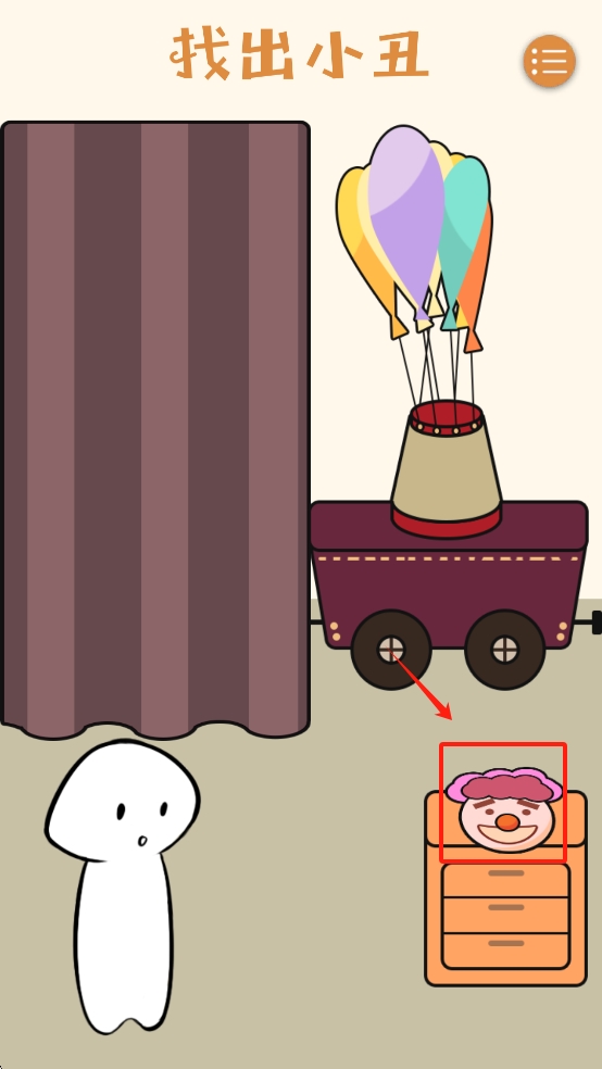 3、在游戏中,仔细观察并找出与众不同的元素。点击你认为是“小丑”的物品。