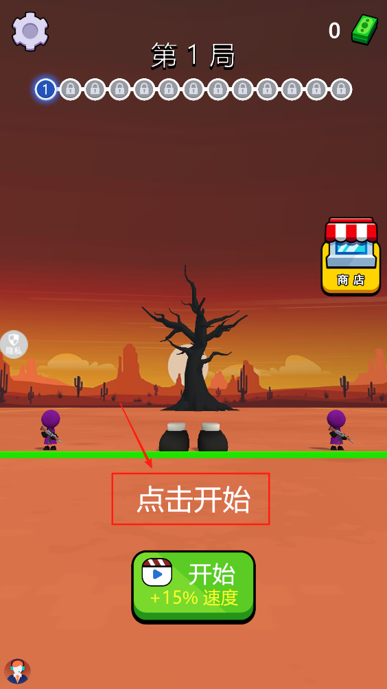 1、点击“点击开始”按钮,进入游戏第一局。