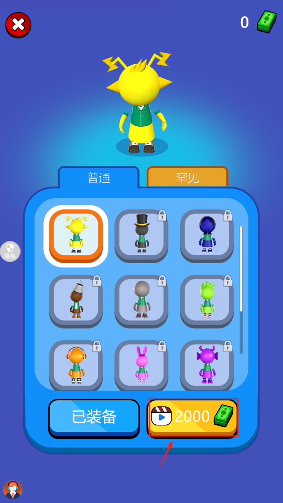 3、在角色选择界面,购买新角色,点击购买按钮进行交易。