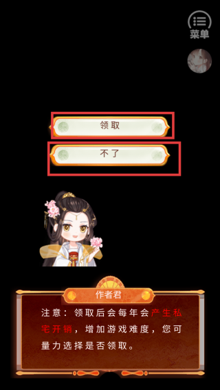 2、点击【领取】会增加游戏难度,点击【不了】则没有变化。