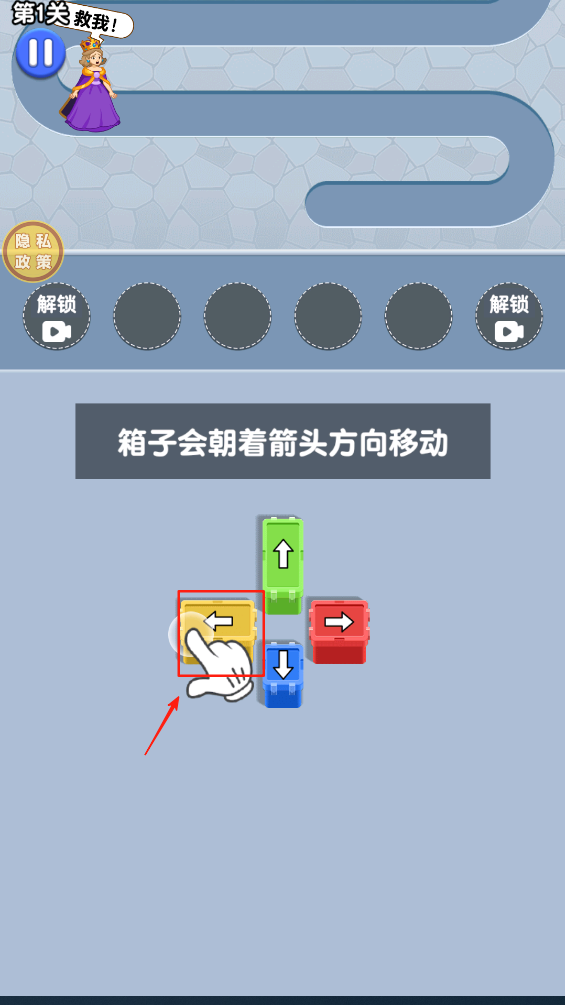 2、在游戏关卡中,通过提示了解如何操作,例如拖动箱子以改变路径。