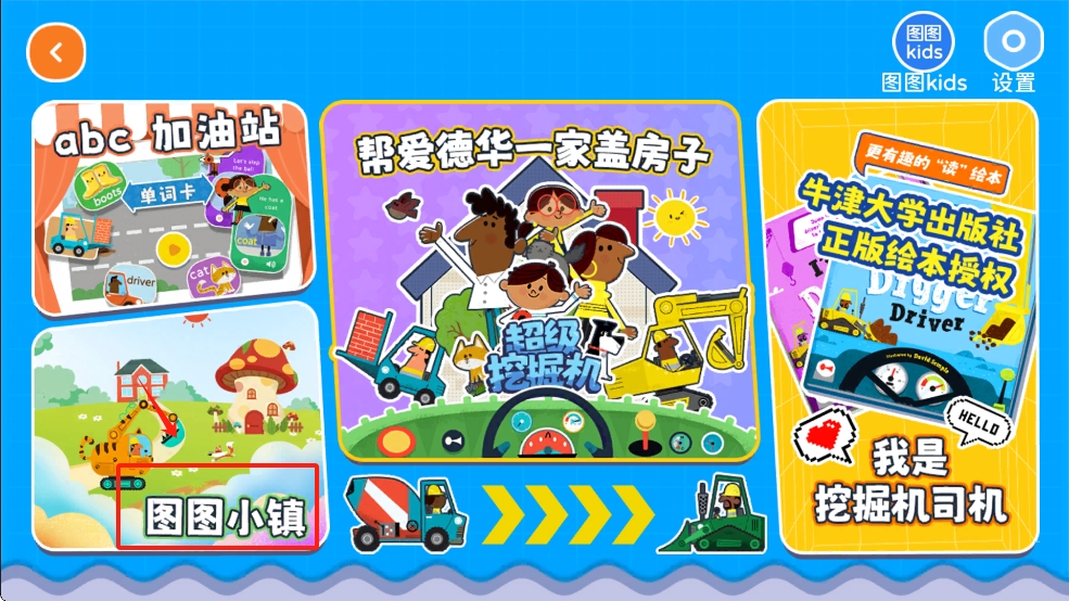 2、在主菜单界面,点击下方的“图图小镇”图标,进入游戏选择区域。