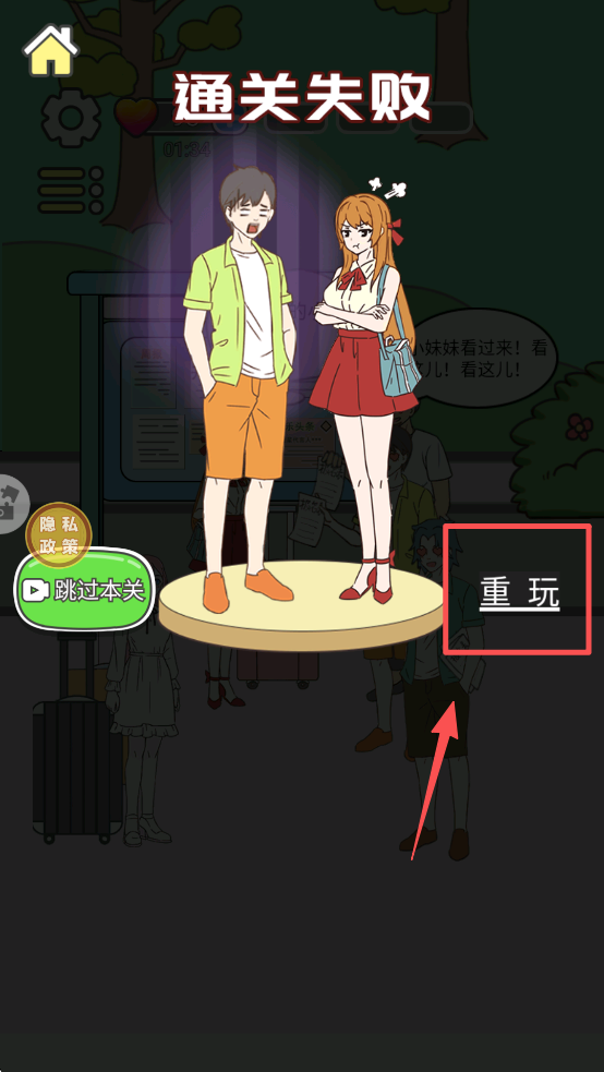 3、若通关失败,点击“重玩”按钮,重新挑战,尝试不同的策略。