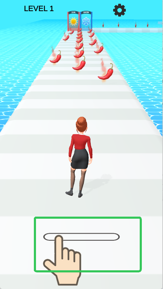 1、进入游戏后玩家通过左右滑动屏幕来控制女孩方向。