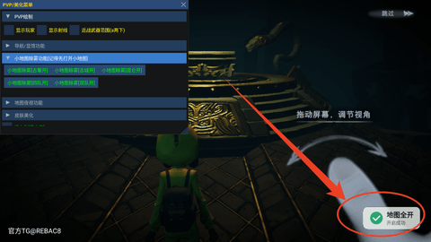 4、我们可以看到里面有很多辅助功能,看看你要使用哪个功能,点击开启就行了,例如我要使用“小地图除雾[古蜀开]”,可以看到右下角显示“地图全开”,表明已经生效,其它功能类似。
