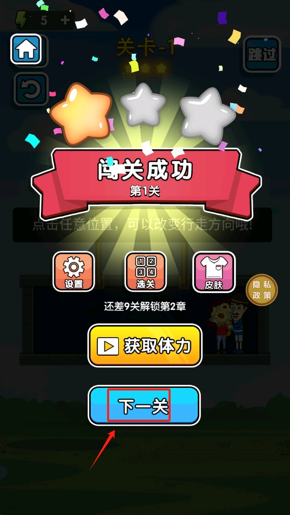 4、成功通关后,点击“下一关”继续游戏或获取体力进行更多挑战。